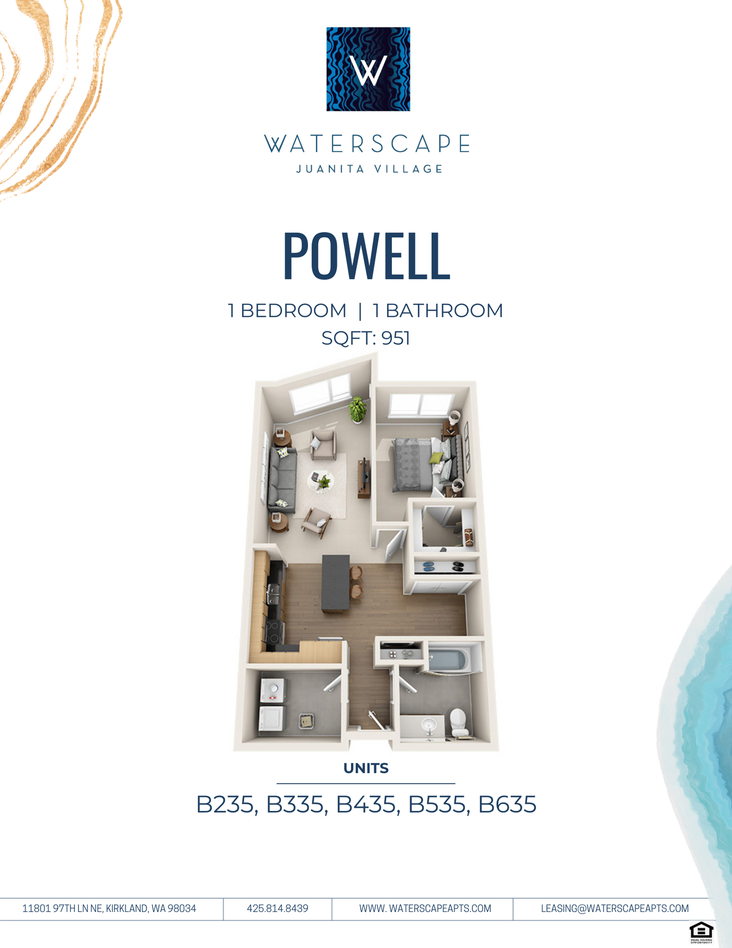 Welcome to Waterscape at Juanita Village, a vibrant lakeside community nestled in the heart of Kirkland. These thoughtfully designed apartment homes offer the perfect blend of comfort, convenience, and urban charm, with stunning views of Lake Washington. Each residence features spacious layouts, upscale finishes, and private patios or balconies- ideal for enjoying the serene surroundings. With waterfront trails, local cafés, boutique shopping, and entertainment options just blocks away, Waterscape delivers a modern living experience in one of the area’s most sought-after neighborhoods.