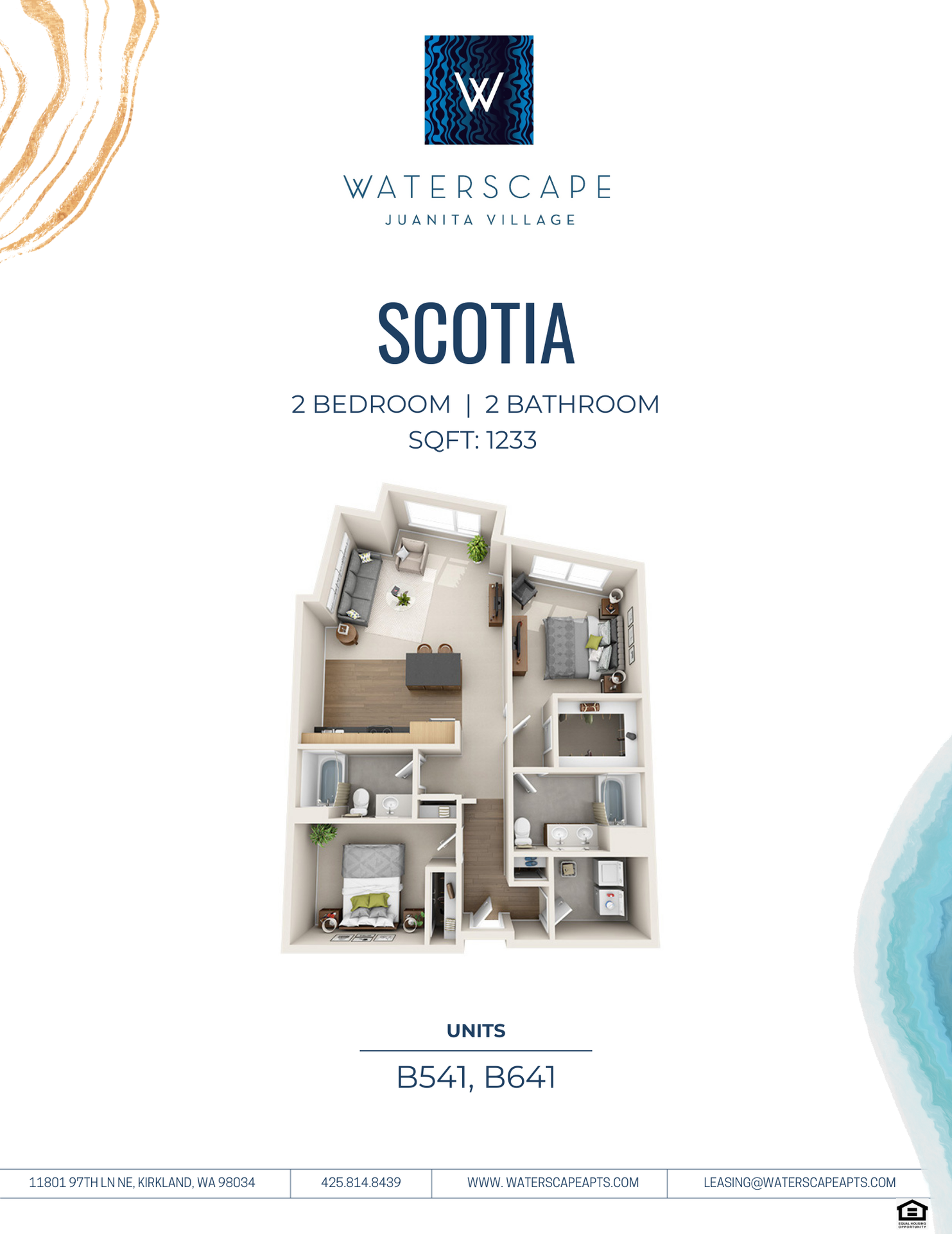 Welcome to Waterscape at Juanita Village, a vibrant lakeside community nestled in the heart of Kirkland. These thoughtfully designed apartment homes offer the perfect blend of comfort, convenience, and urban charm, with stunning views of Lake Washington. Each residence features spacious layouts, upscale finishes, and private patios or balconies- ideal for enjoying the serene surroundings. With waterfront trails, local cafés, boutique shopping, and entertainment options just blocks away, Waterscape delivers a modern living experience in one of the area’s most sought-after neighborhoods.